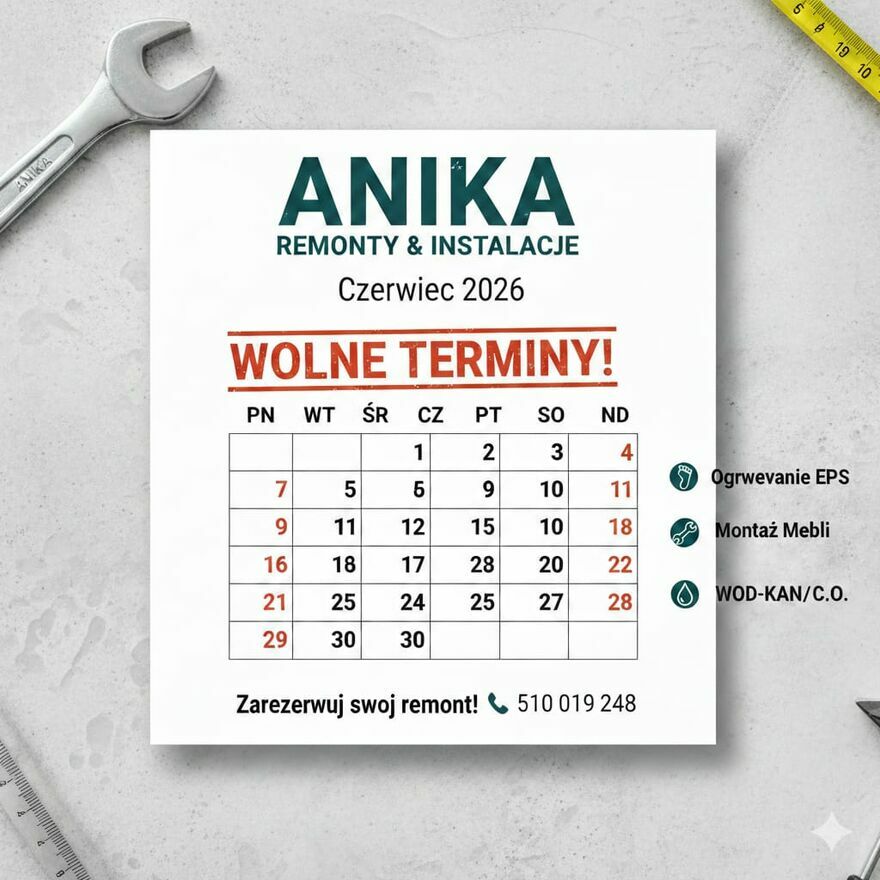Masz w domu instrukcję montażu, która wygląda jak szyfr do sejfu, a rura pod zlewem postanowiła zostać fontanną? Zanim zaczniesz rzucać kluczami o ścianę i planować wyprowadzkę w Bieszczady – weź głęboki oddech i wybierz numer do Aniki!
