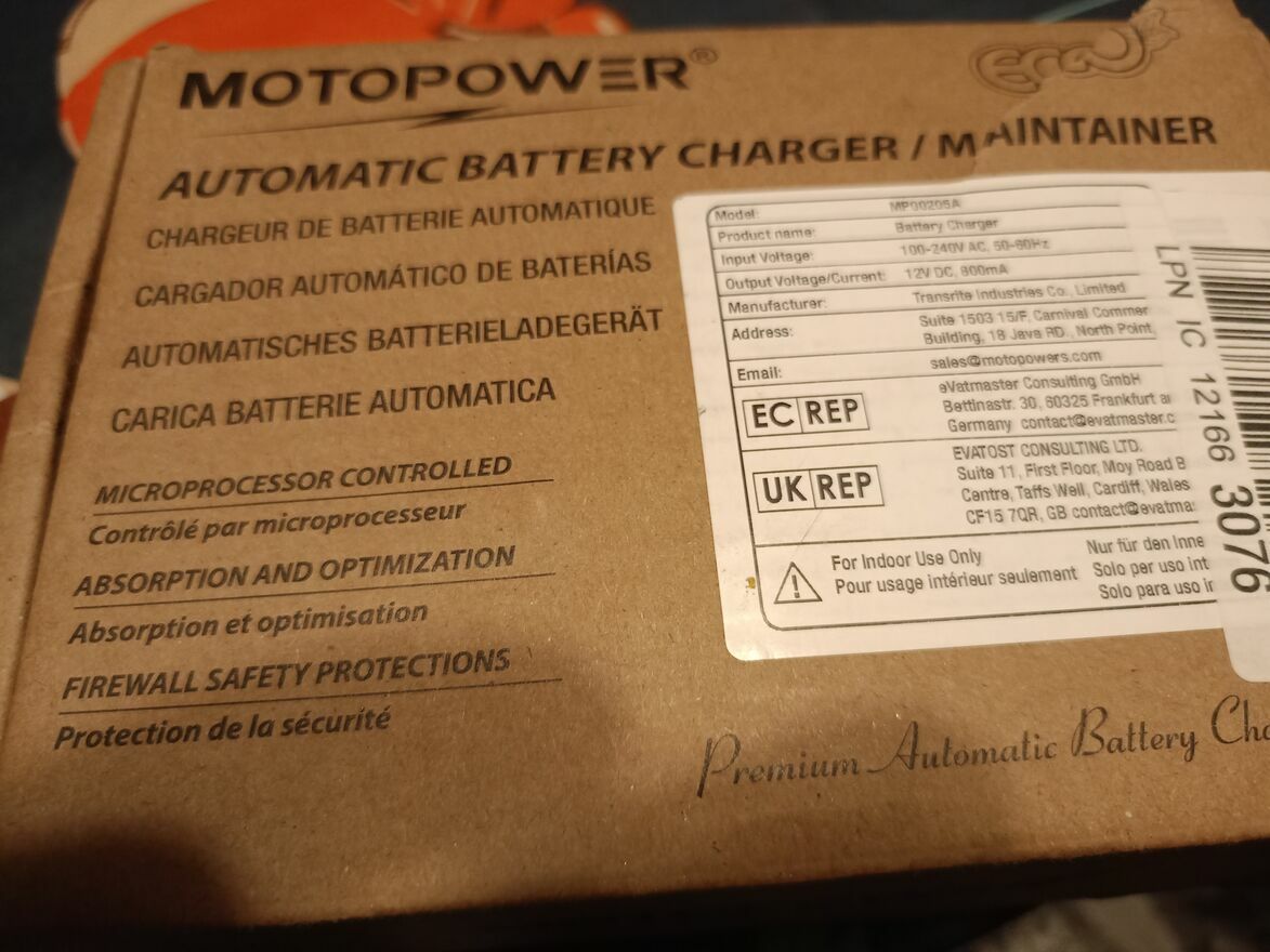 Automatyczna ładowarka/konserwator akumulatorów MOTOPOWER MP00205A. Jest to inteligentne, kompaktowe urządzenie przeznaczone do ładowania i podtrzymywania różnych typów akumulatorów kwasowo-ołowiowych 12 V.Specyfikacja produktu:
