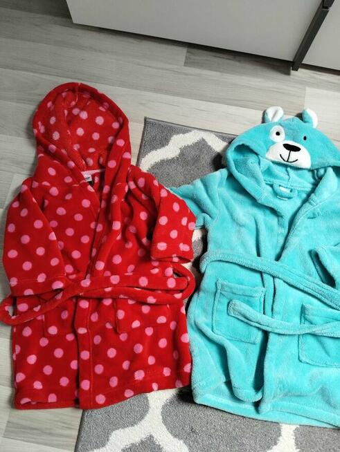 Dwa zestawy polarowych szlafroków dla dzieci w dobrym stanie, rozmiar 92/98. Idealne do użytku domowego po ...