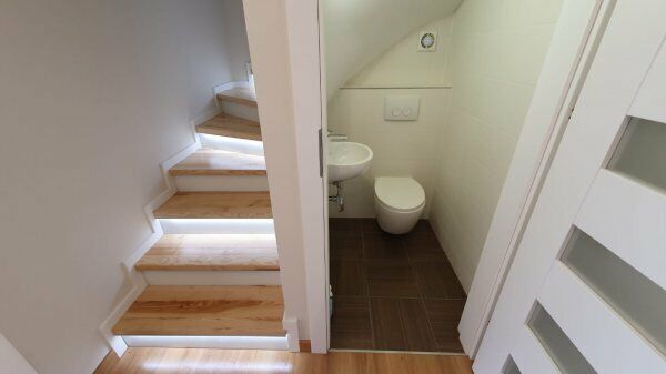 Lokal posiada bardzo funkcjonalny rozkład , na dolnej kondygnacja :