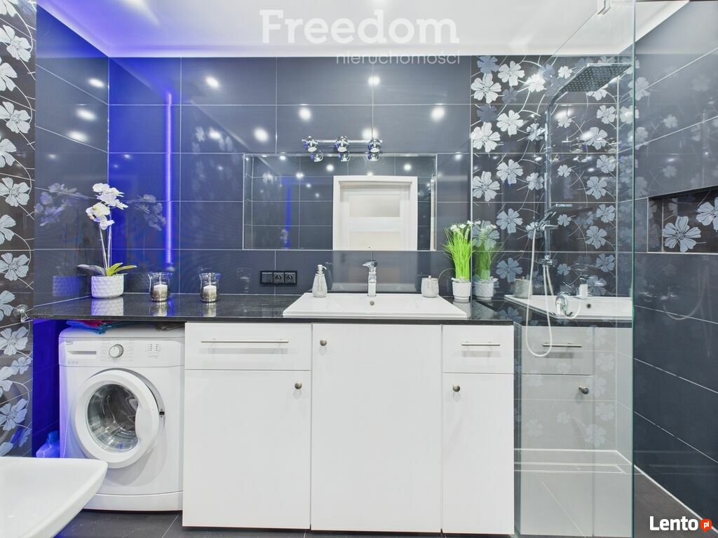 lodówka, duża zmywarka, okap, piekarnik, mikrofalówka). W łazience