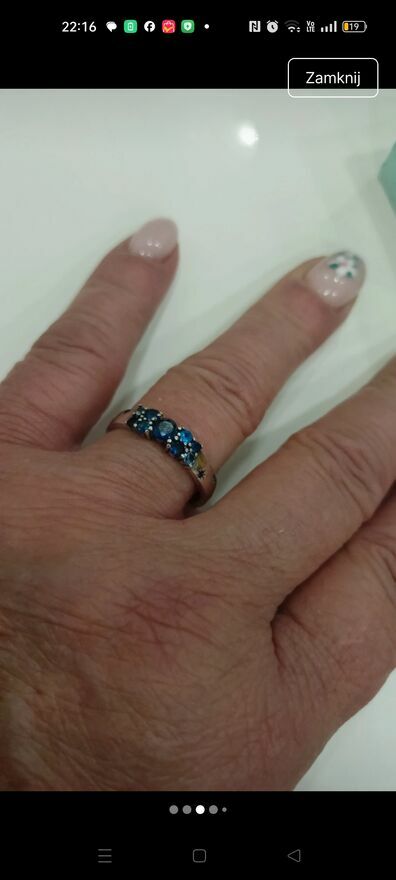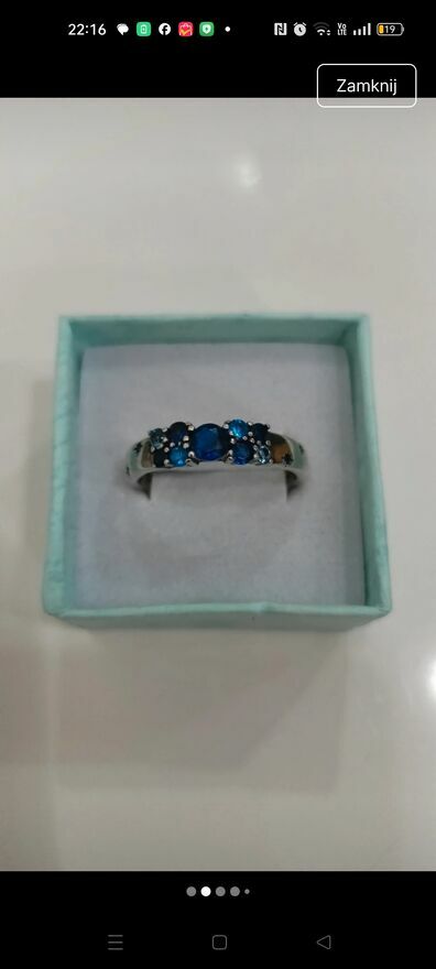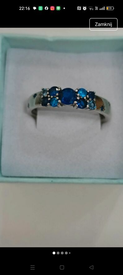 Pierścionek S925 z syntetycznymi niebieskimi cyrkoniami Sprzedaję bez pudełeczka próba widoczna na ostatnim zdjęciuGrażyna