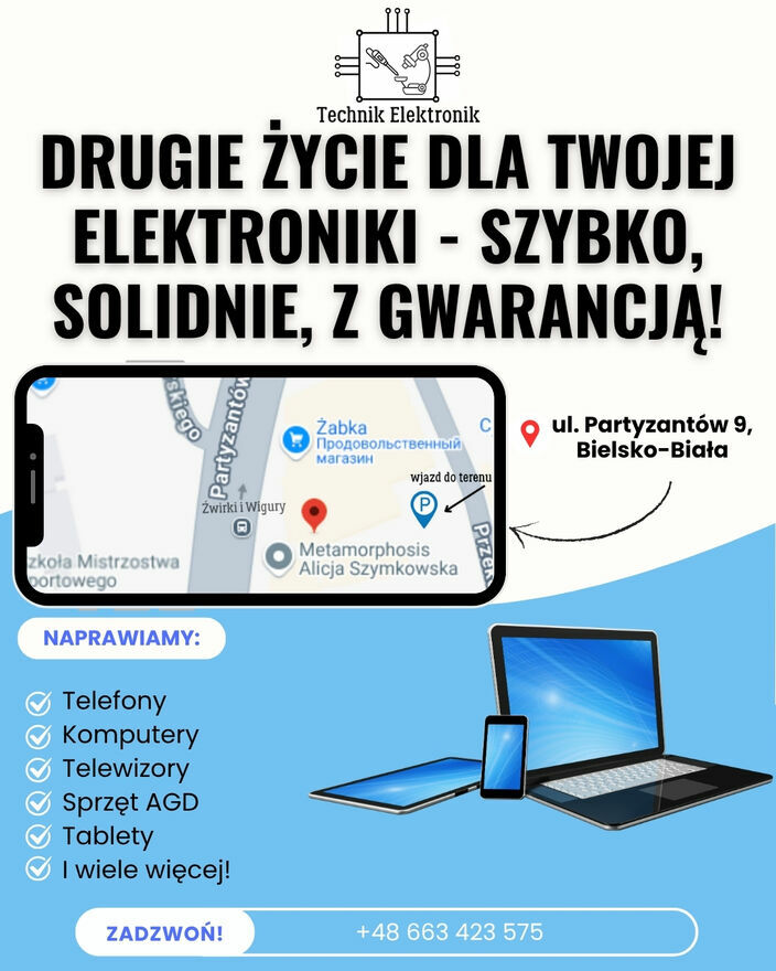 Technik Elektronik – Serwis RTV i komputerowy w Bielsku-BiałejNaprawiamy sprzęt elektroniczny, komputerowy, RTV oraz telefony wszystkich marek.