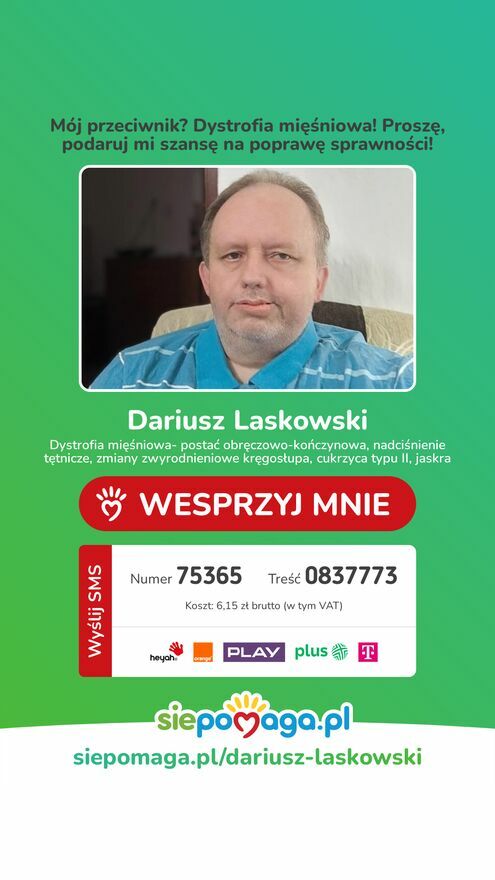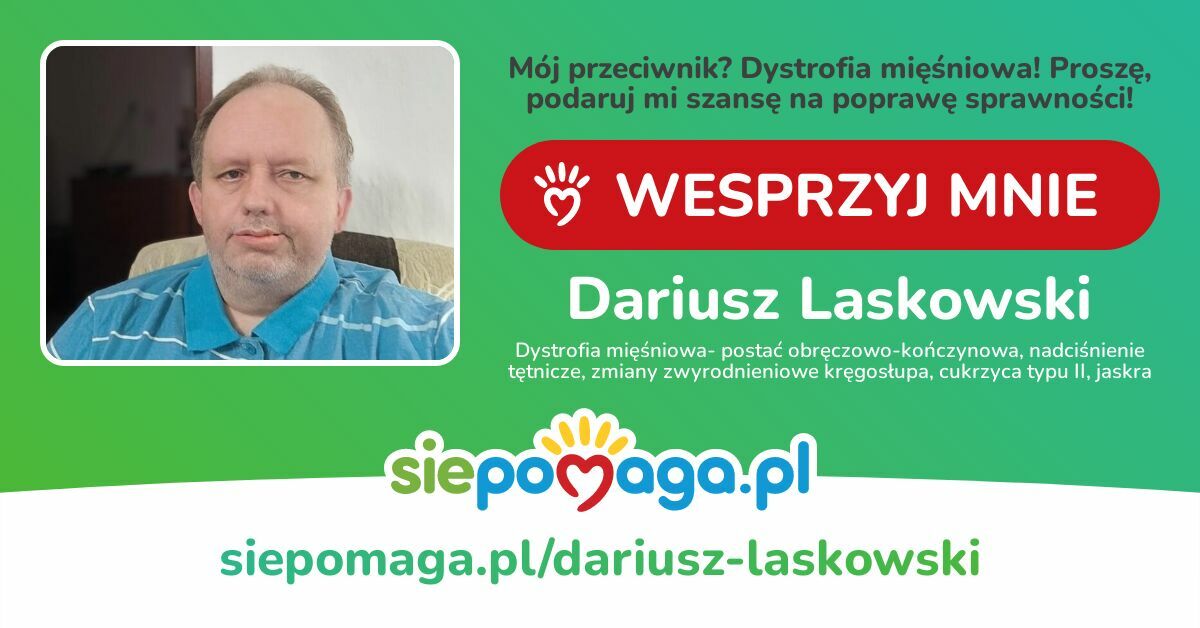 Bardzo Was Proszę Pamiętajcie o Mnie Rozliczając Swój Podatek za Ubiegły Rok! Proszę, przekaż mi 1,5% podatku przy rozliczeniu PIT i pomóż mi dotrzeć z moim postem do innych osób. Twoje wsparcie jest dla mnie ogromnie ważne. Dziękuję za każdy gest i okazane serce — Dariusz Laskowski!Fundacja Siepomaga