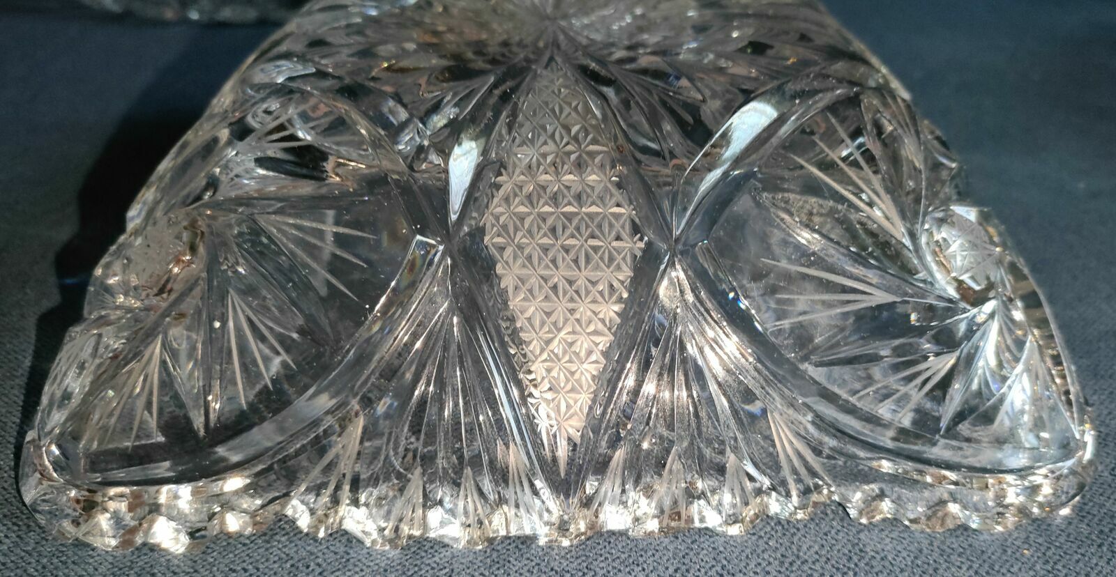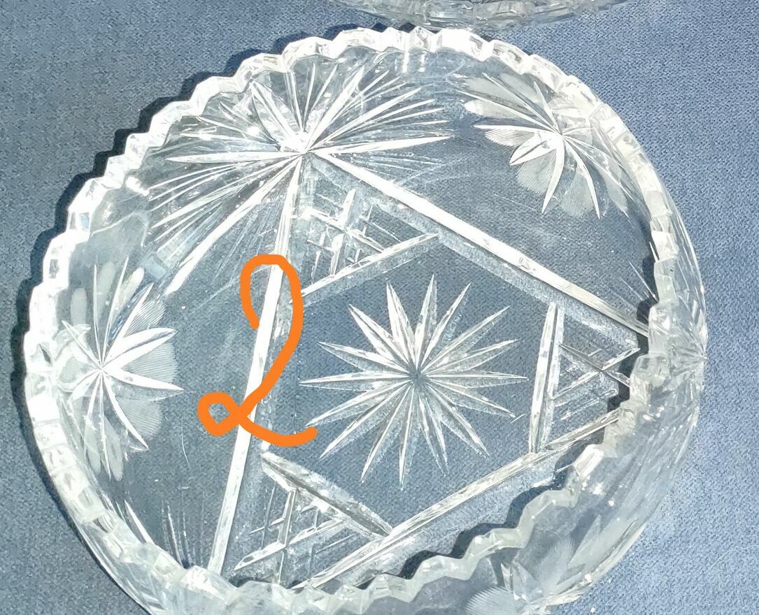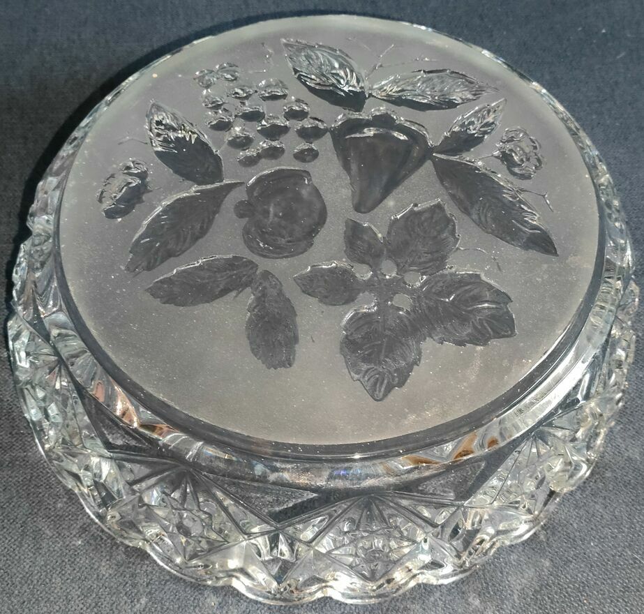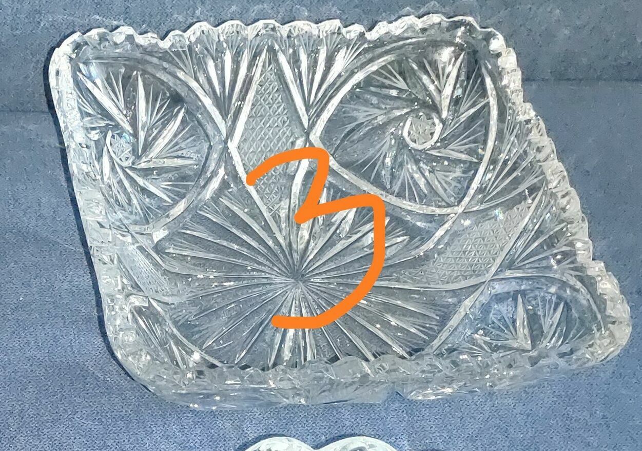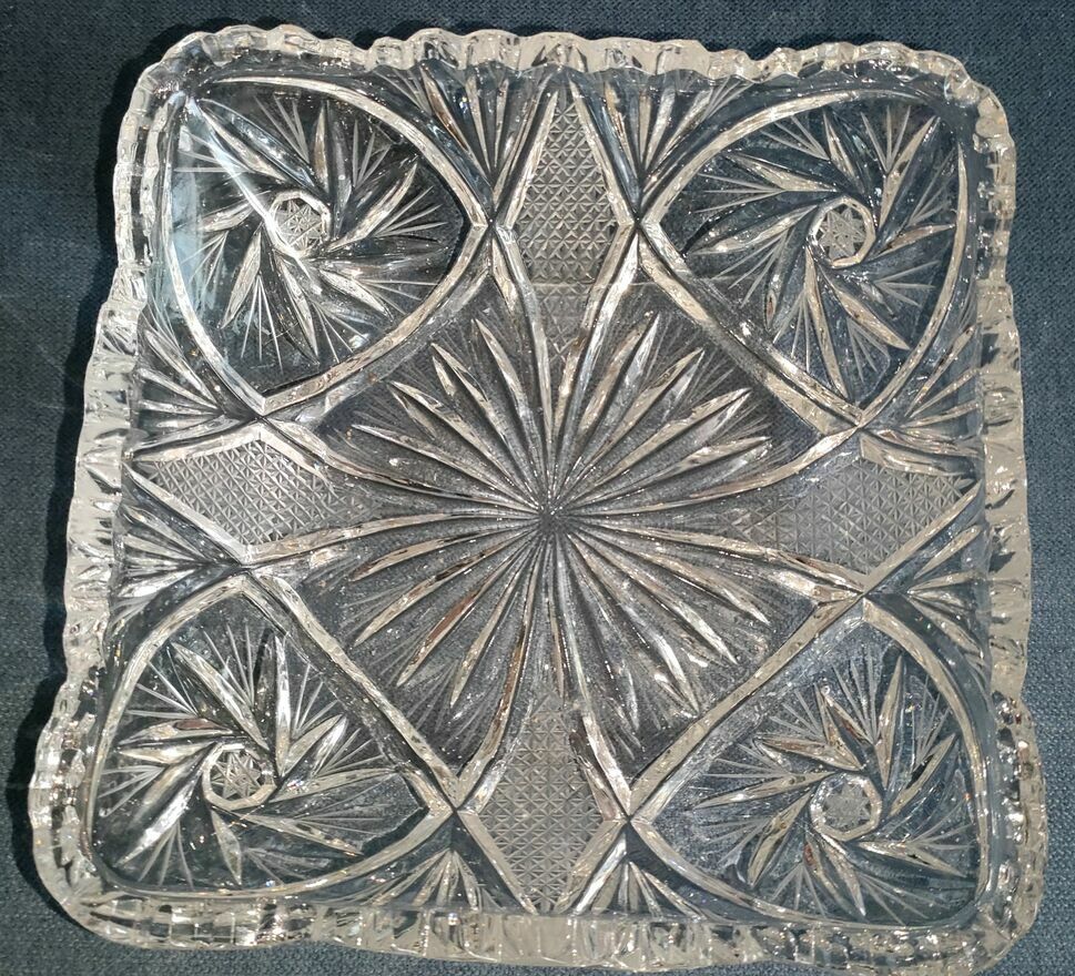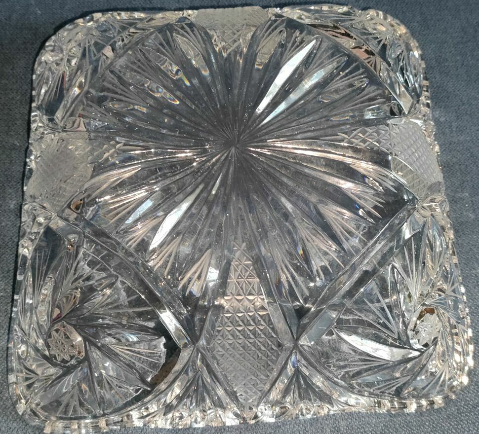 Nr.3 -Kwadratowa salaterka z motywem roślinnym i promienistym szlifem