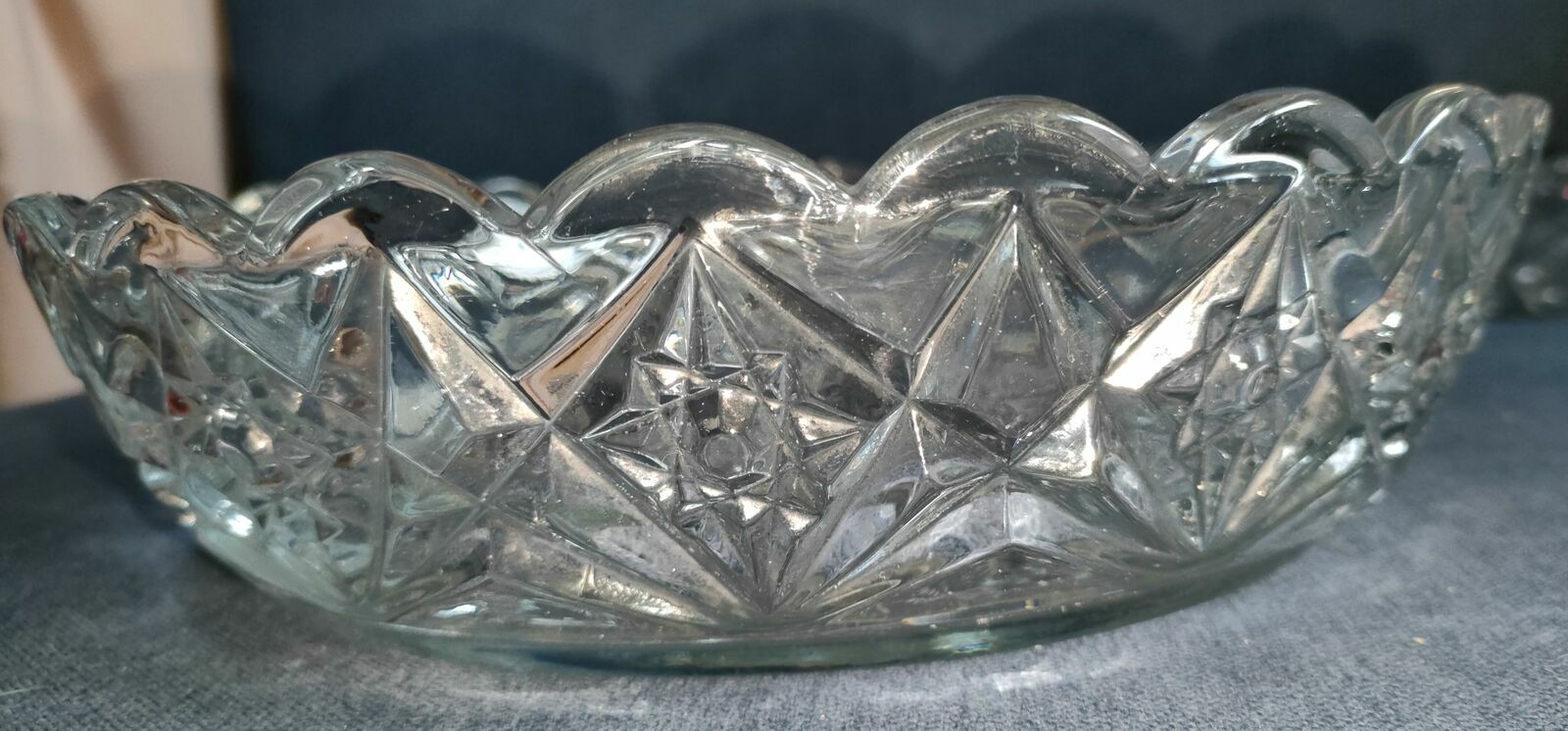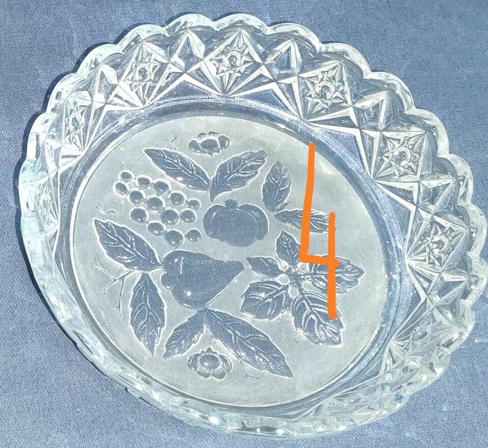 Komplet ozdobnych salaterek / pater z grubego szkła vintageSprzedam elegancki zestaw 4 szklanych naczyń dekoracyjnych wykonanych z grubego, tłoczonego szkła. Każda sztuka ma inny wzór i kształt — idealne do deserów, owoców, sałatek lub jako ozdoba stołu i witryny.